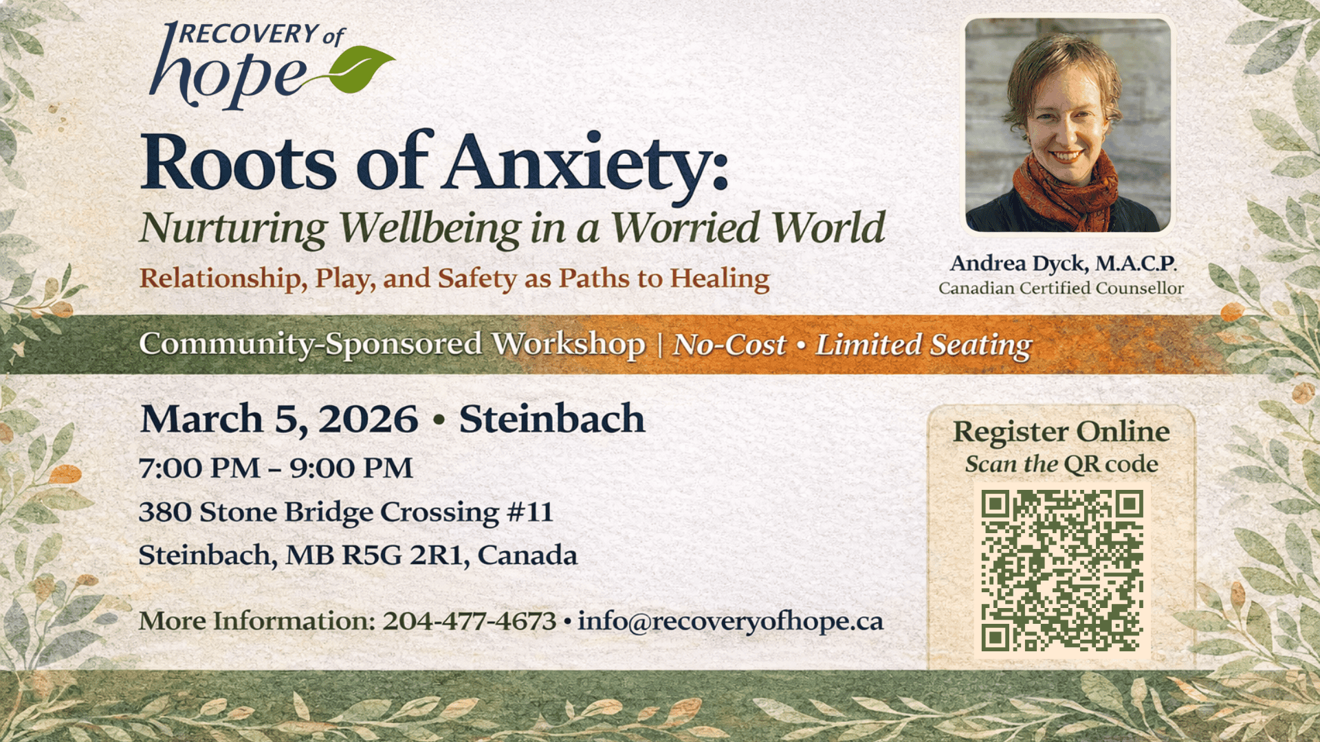 Steinbach – Recovery of Hope – Roots of Anxiety Workshop