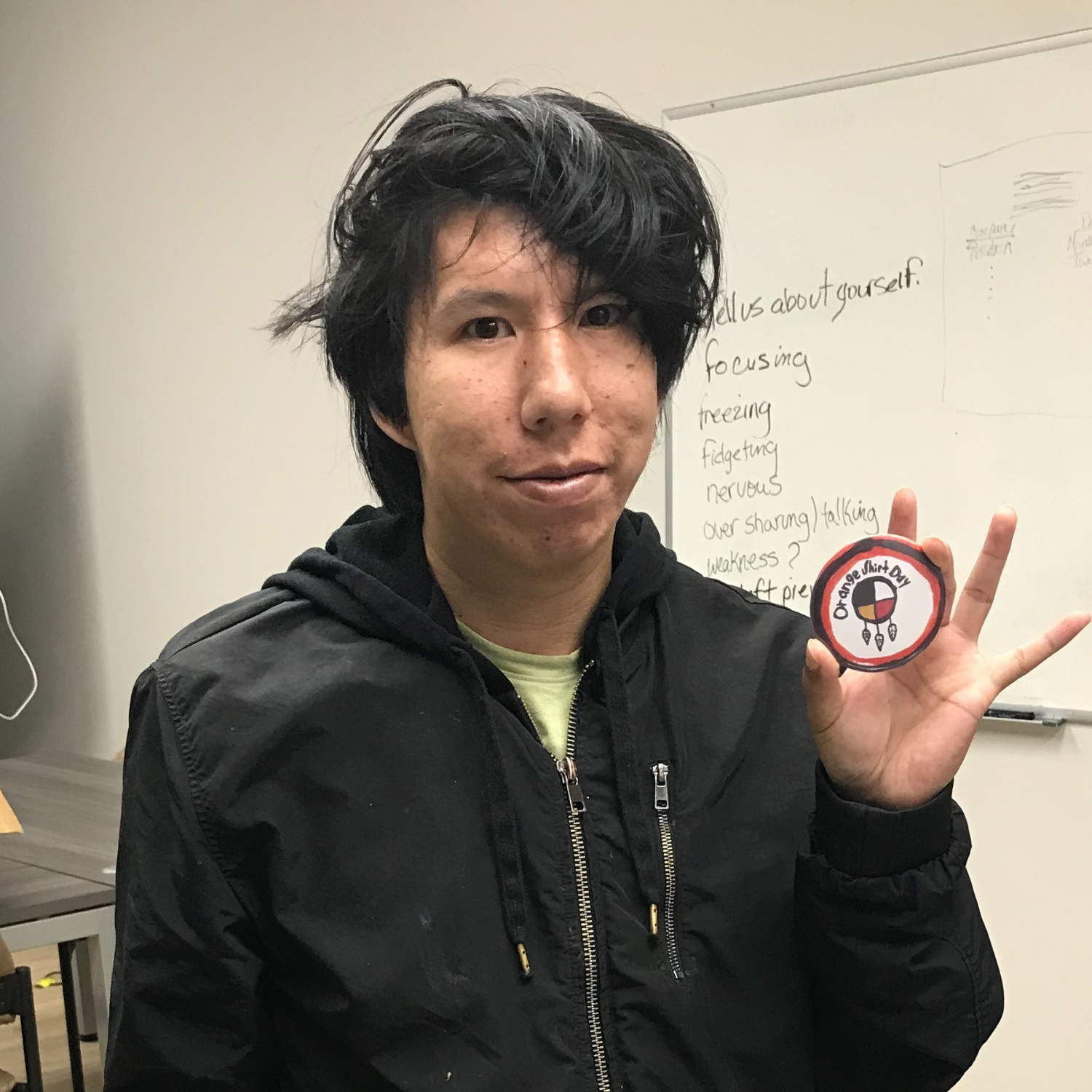 This September, I did a project for the National Day for Truth and Reconciliation. The staff encouraged me to take it on after seeing some of my art. I made pins by hand, each one with the intention of energizing people and helping them feel the meaning behind the day. The response was really positive, Eden staff wore them across different locations, and I was proud to see my work had made a difference.