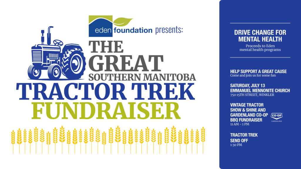 We are accepting registrations of tractors 40 years old and older, from far and wide! We’d love to see you at this year’s event. Register in-person by visiting our Eden Health Care Services office at 309 Main St. in Winkler, or call (204)325-5355 and ask for Quinn!