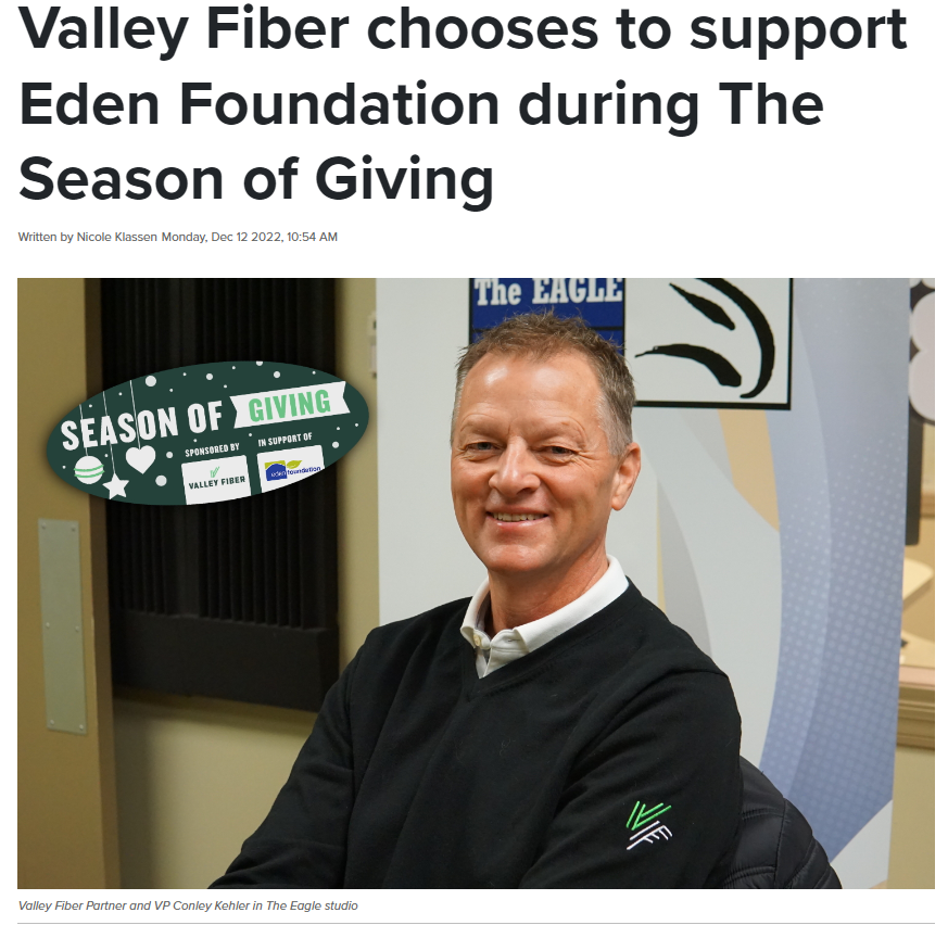 Click the link below, to view the article and hear interviews with Valley Fiber Partner and Vice President Conley Kehler: